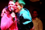 über drei Fernsehschirme flimmern die Texte der programmierten Karaoke-Nummern.